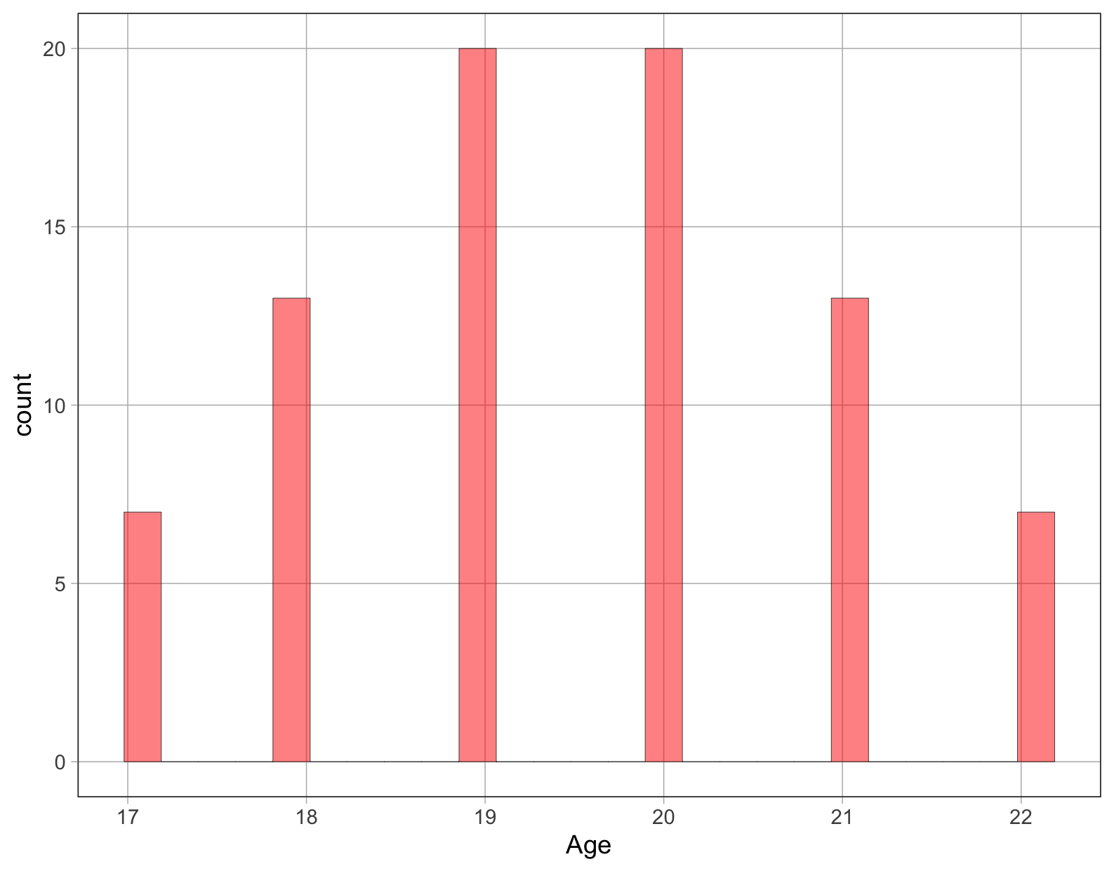 Αλλά, αν ο στόχος μας είναι να δημιουργήσουμε ένα στατιστικό μοντέλο της κατανομής του πληθυσμού, σχεδόν πάντα—ειδικά σε αυτό το μάθημα—θα χρησιμοποιούμε τον μέσο όρο. Θα εμβαθύνουμε λίγο για να δούμε το γιατί. Αλλά πρώτα, μια σύντομη παράκαμψη για να δούμε πώς μπορούμε να προβάλλουμε τη διάμεσο και τον μέσο όρο σε ένα ιστόγραμμα.