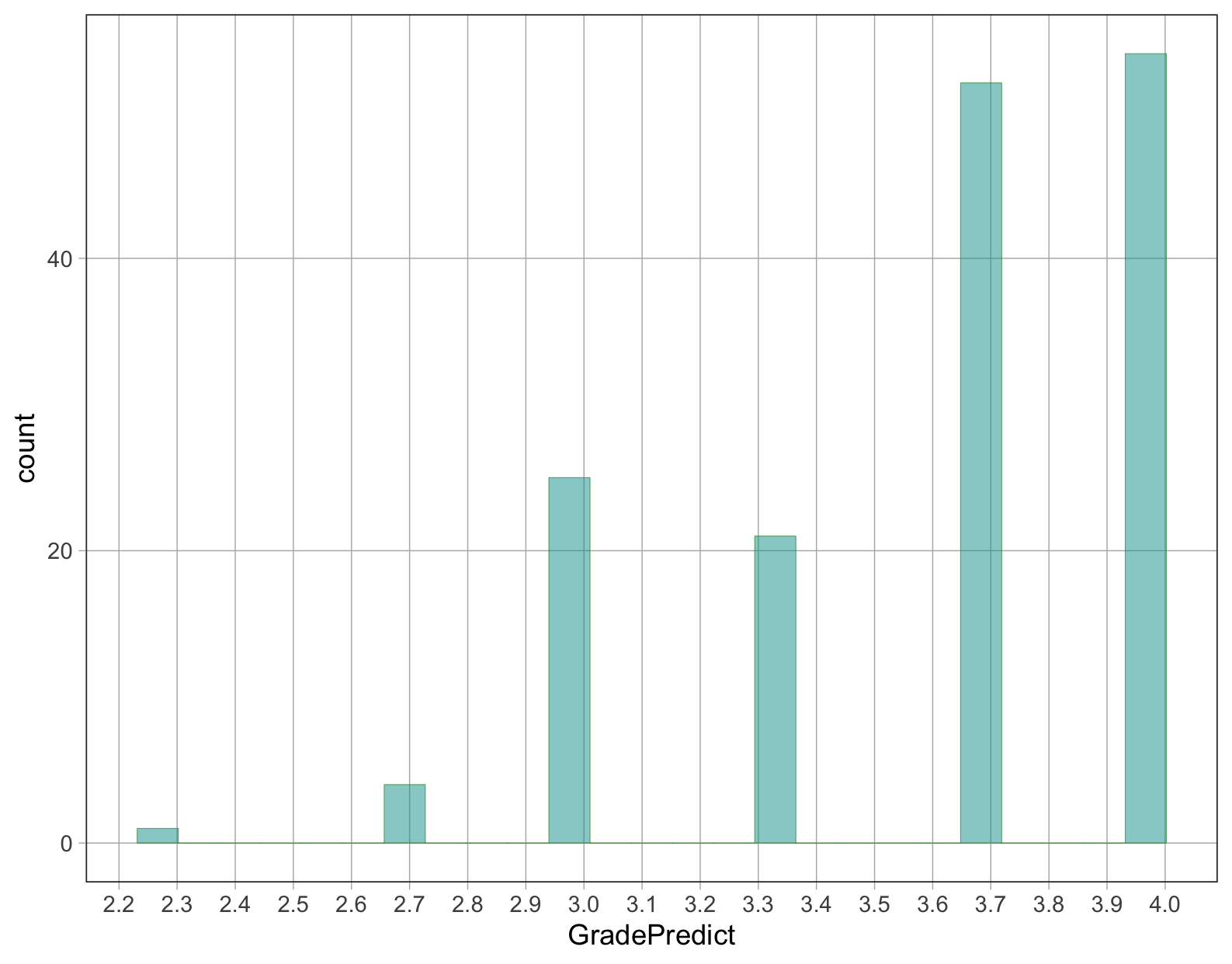 ως εξής: favstats(~ GradePredict, data = Fingers)