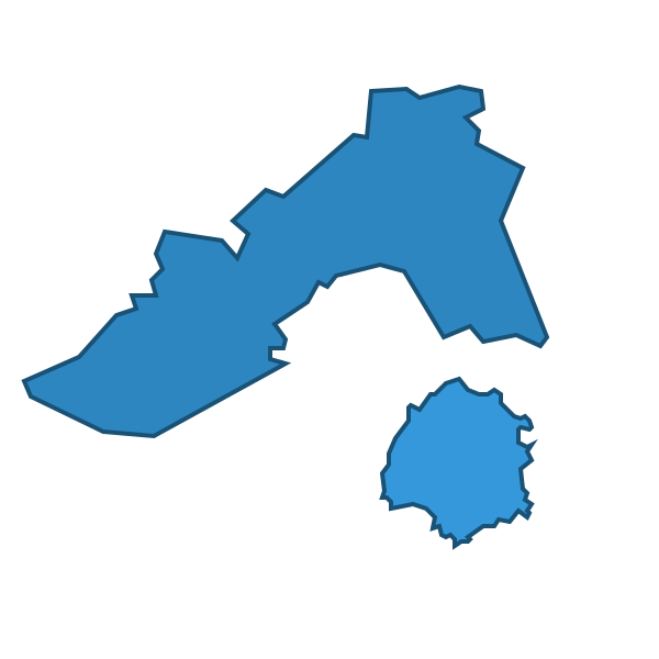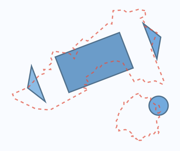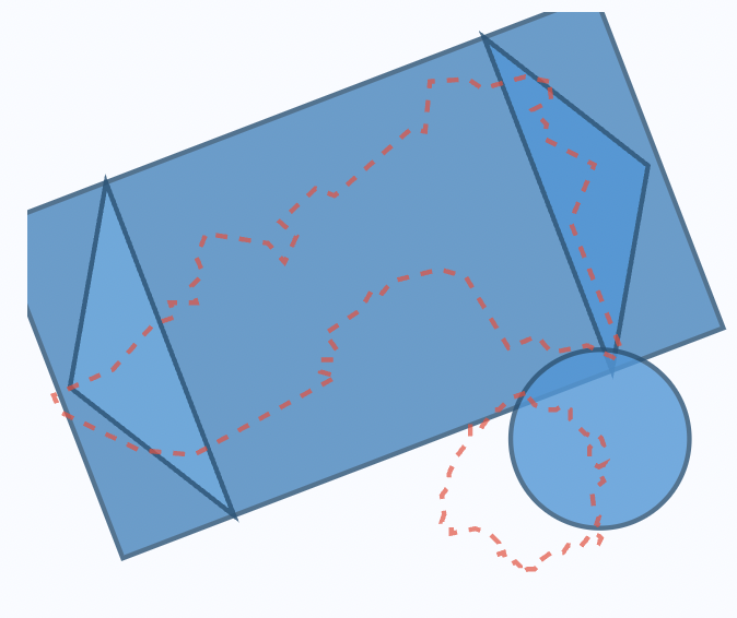 Ένας τρόπος να προσεγγίσουμε αυτό το πρόβλημα θα ήταν να μοντελοποιήσουμε το εμβαδόν του Νομού χρησιμοποιώντας γεωμετρικά σχήματα—συγκεκριμένα, ορθογώνια, τρίγωνα και κύκλους. Αν σχεδιάσουμε ένα ορθογώνιο, δύο τρίγωνα και έναν κύκλο, και τα συνδυάσουμε με τον σωστό τρόπο, μπορούμε να πάρουμε κάτι που να μοιάζει κάπως με τον Νομό Καβάλας.