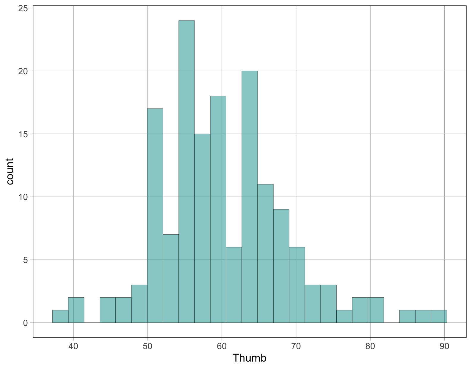 Μεταβλητή 2: Μήκη Αντίχειρα στο πλαίσιο δεδομένων Fingers