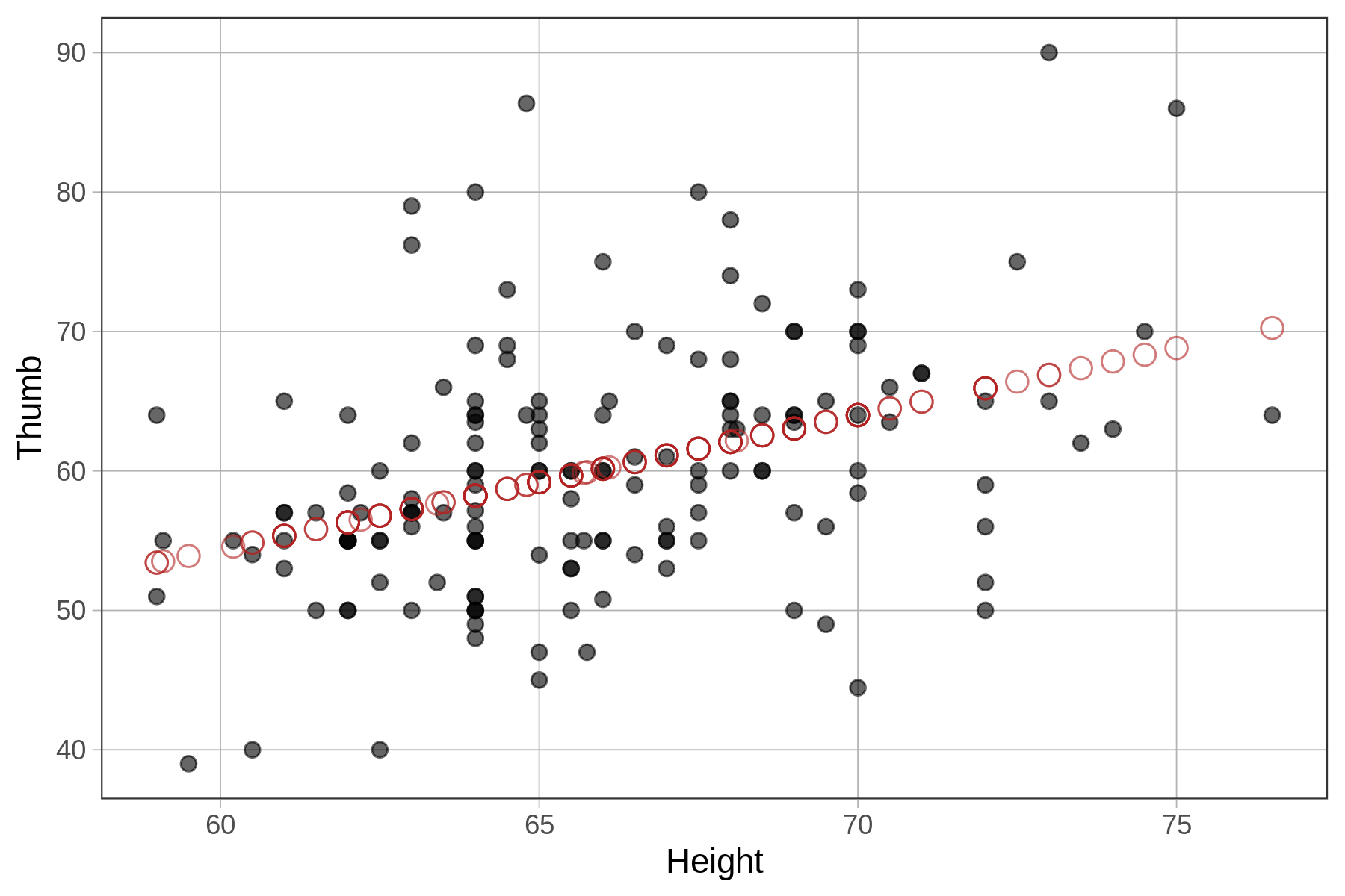 Μοντέλο: \(\text{Thumb}_i = b_0 + b_1 \times \text{Height}_i\)