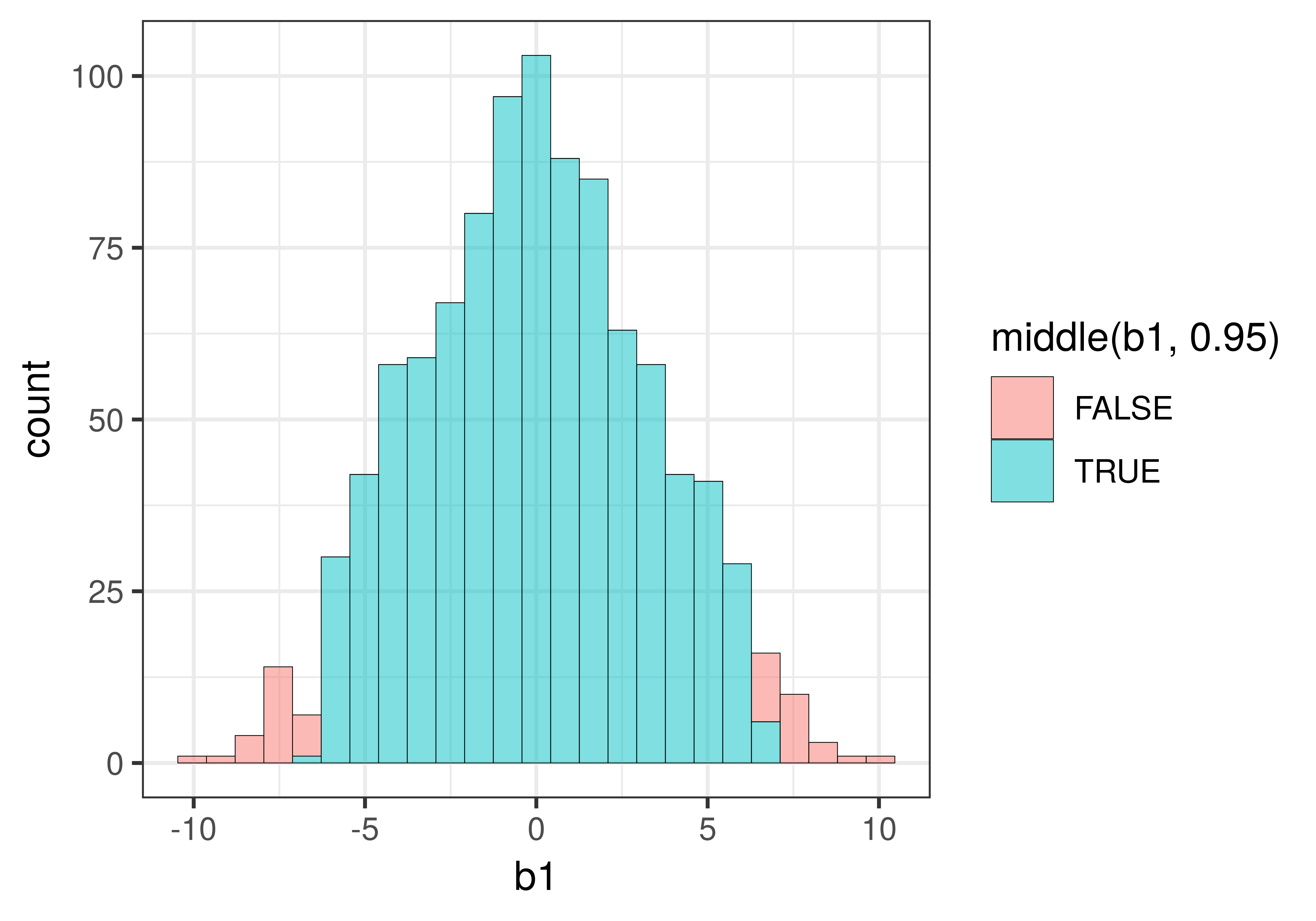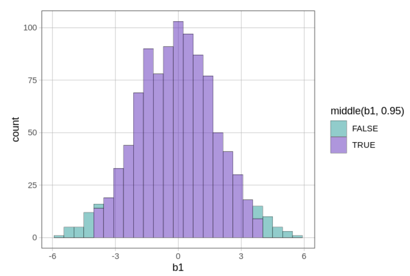 Στο ιστόγραμμα, οι τιμές χρωματίζονται με βάση τη συνάρτηση middle(b1, .95):